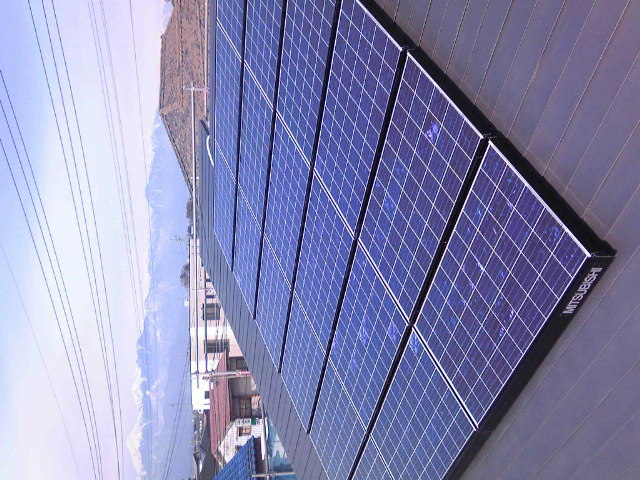 足場がはずれる前に、スマイルハウスの水落さんにこっそりパネルを見せてもらいました。我が家の太陽光パネルは、3.2KWの三菱製です。