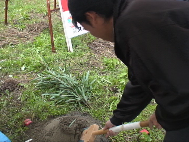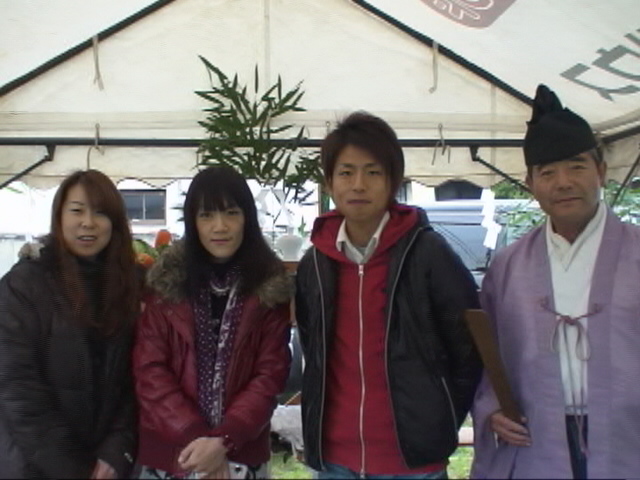 私たちの担当をしてくれているのが、スマイルハウスの高宮さんです。いつも笑顔で対応してくれます。おそらく多くの方は地鎮祭と聞いて、何を用意したら良いのか?祭壇、初穂料、お車代、お供え物、榊、など悩む事が沢山あると思いますが、スマイルハウスでは、それらをあらかじめ用意して下さるので、私たちは当日、我が家の建築予定地に向かうのみで、大変助かりました。