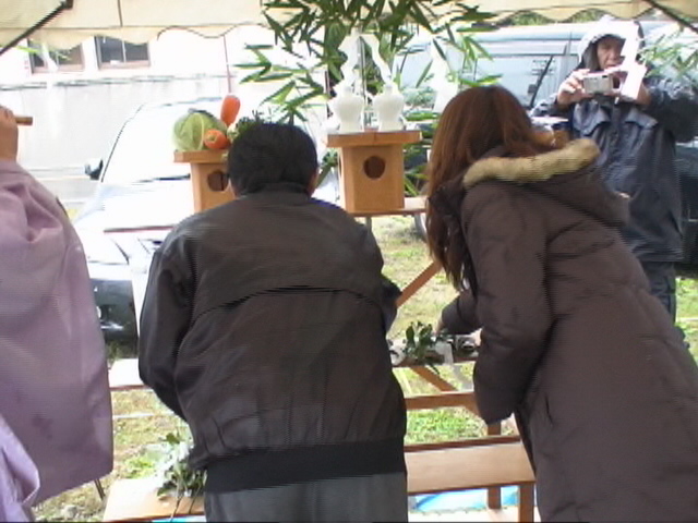 今日は、我が家の地鎮祭でした。天気は、あいにくの雨でしたが、スマイルハウスのお陰で、無事に地鎮祭を執り行なうことができました。
